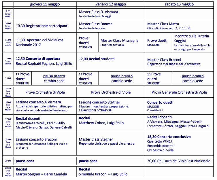 Tutti gli eventi del calendario della manifestazione si svolgeranno negli orari antimeridiani nella sede di Via Portapiana, mentre negli orari pomeridiani, le attività si svolgeranno nella sede della "Casa della Musica" in Piazza Amendola.